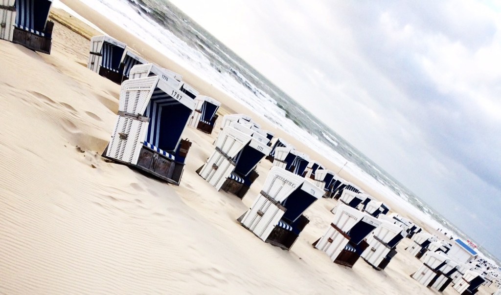 Auch am nächsten Tag gehe ich lange am Strand spazieren, der Wind hat sich gelegt, die Sonne strahlt, die Strandkörbe füllen sich mit Badegästen.