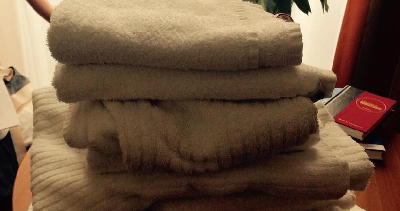 Ich schließe meine Zimmertür auf und schaue vorsichtig um die Ecke. Keine Veränderung auszumachen. Nicht auf dem Waschbecken, nicht auf dem Klodeckel, nicht auf dem Tisch. Seit Tagen vermehren sich meine Handtücher, mittlerweile habe ich 13 (dreizehn) Stück, die ich zwischen Bad und Schrank verteilt habe, langsam bekomme ich ein Platzproblem. Werfe ich ein schmutziges Handtuch auf den Boden, liegen später drei neue da, neulich sogar vier. Ich wage kaum, weitere Handtücher auf den Fussboden zu legen, da ich nicht weiß, wo ich die neuen alle lagern soll. Eines Tages werde ich die Zimmertür nicht mehr öffnen können, denke ich, da das Zimmer voller Handtücher ist. Für heute ist alles gut. Zumindest für mich. Was es mit den türklinkenputzenden und randalierenden Mitpatienten auf sich hat, kann ich nicht sagen.