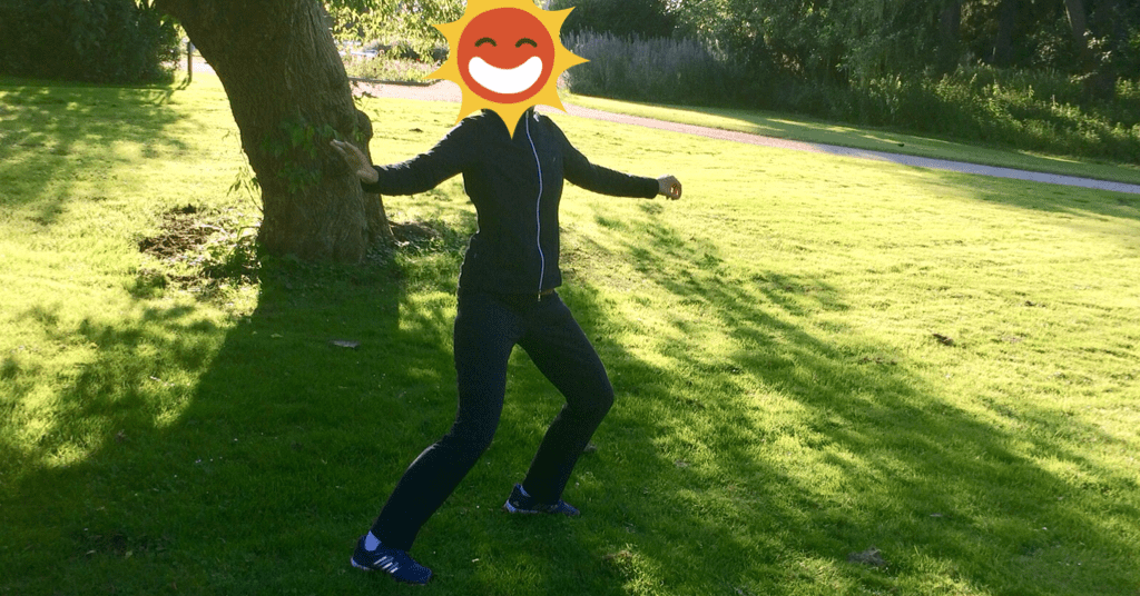Meine Freundin M. bittet mich, „das Taschentuch aufheben“ zu demonstrieren. So heisst die Form natürlich nicht, es gibt keine konkrete Bezeichnung für den Taiji-Teil, der an „die schräge Stellung einnehmen“ anknüpft. Aber es sieht aus, als wolle man mit der linken Hand ein imaginäres Taschentuch vom Boden aufheben.