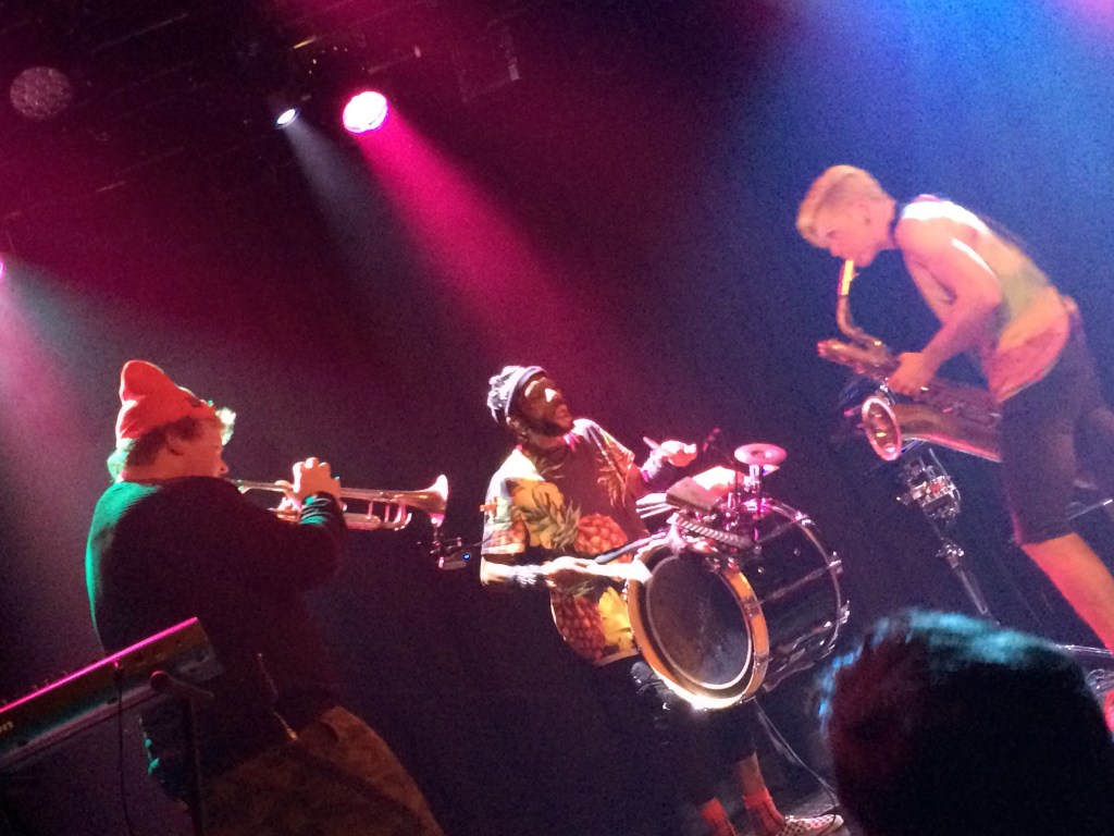 Der Saal tobt, hüpft, ein Meer aus Armen bewegt sich rhythmisch zu Spoktopus, als Zugabe gibt es eine Hommage an AC/DC – T.N.T. mit Bari-Sax, Trompete und Schlagzeug intoniert.
