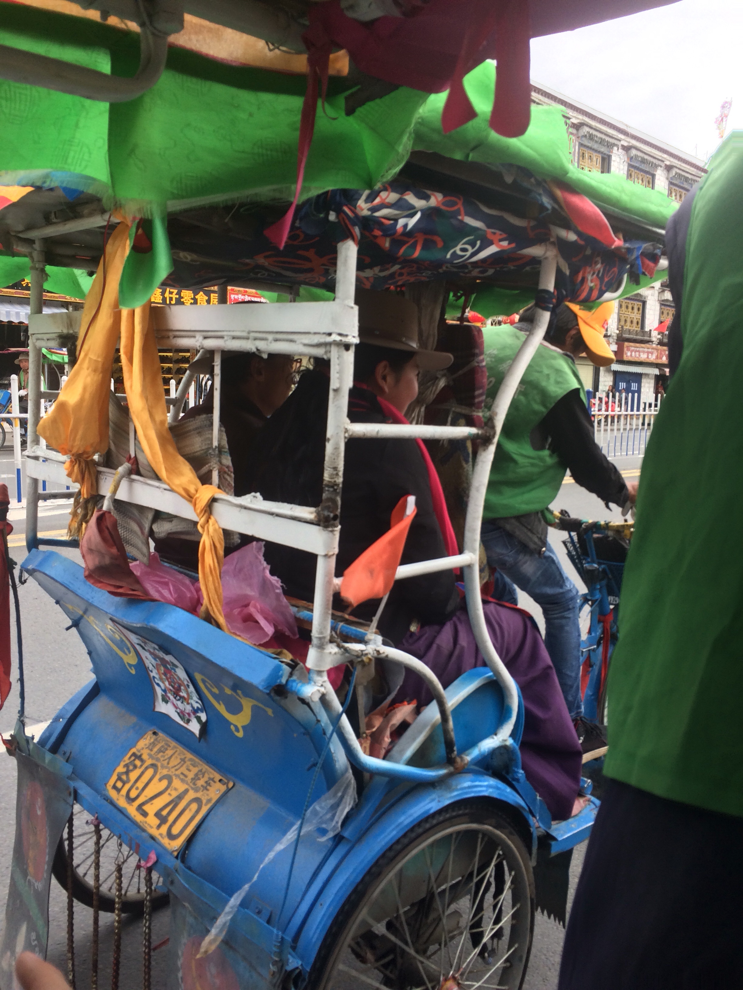 Ein letztes Mal Frühstück und ein letztes Mal Lunch auf dem wunderbaren Dach unseres kleinen pittoresken Hotels in Lhasa. Dazwischen eine letzte Runde mit dem Pilgerstrom den Barkhor umrunden, die letzten Souvenire erstehen, zum Potala Palast schlendern und mit der Fahrrad-Rikscha zurück ins Hotel fahren.