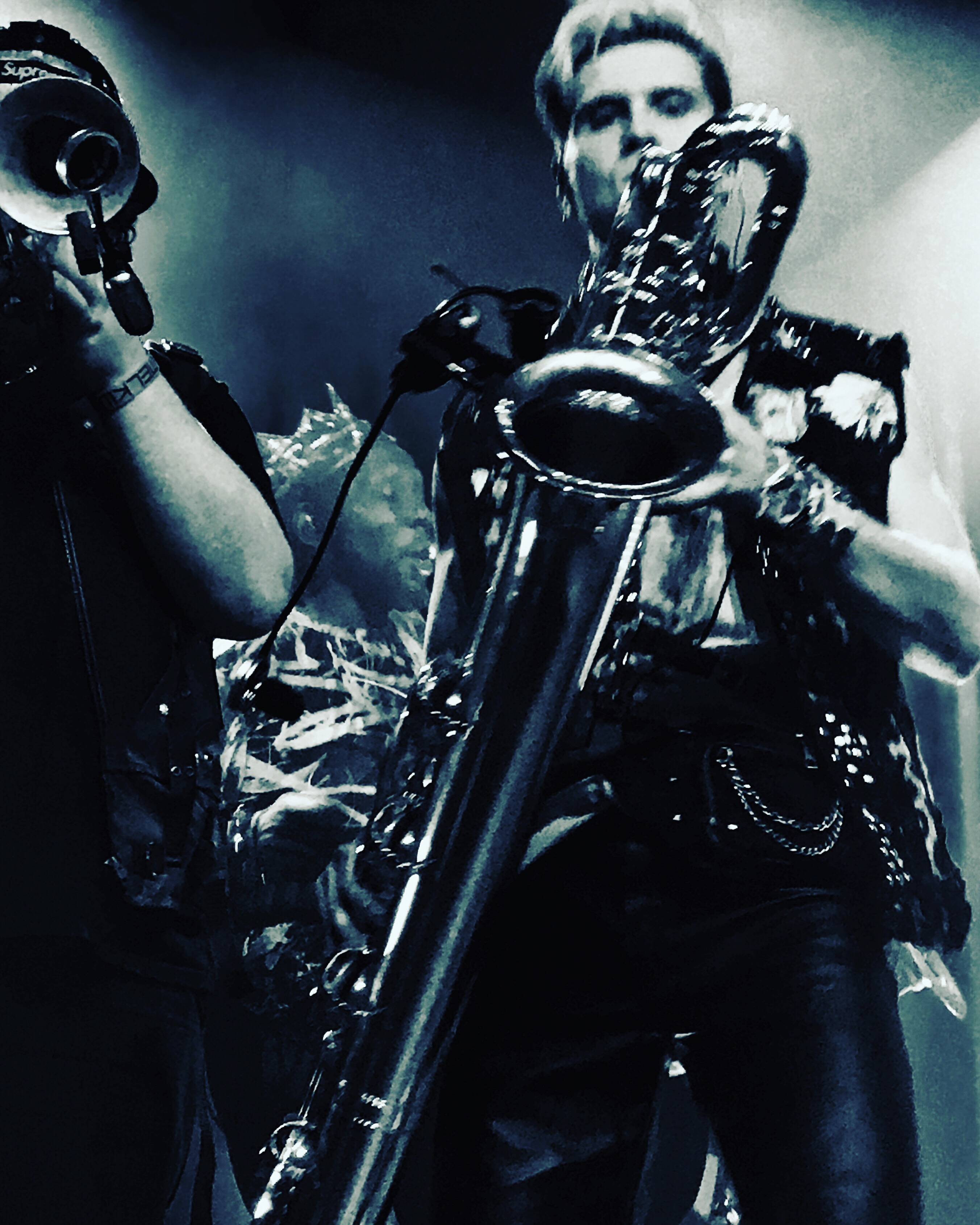 Rechts aus dem Augenwinkel sehe ich die circa 75-jährige Frau, die mit mir schon am Eingang gewartet hat und der man eigentlich einen Stuhl vorn an die Bühne gestellt hatte, lachen und tanzen. Daneben eine Gruppe punkiger Mädchen mit zerrissenen schwarzen Netzstrümpfen, kurzen Röcken, knappen Shirts, bunt gefärbten Haaren und wild geschminkt, etwas weiter links ein paar amerikanische Jungs in Jeans und T-Shirt, dann wieder ein paar ältere Jazz-Fans, rechts von mir ein Holländer mit Ohrstöpseln und starrem Blick auf die Bühne, ein anderer mit Glatze und begeistert lachend, links von mir ein sehr sympathisches Amsterdamer Pärchen, mit dem ich schon vor dem Konzert ins Gespräch gekommen bin; nun tanzen wir gemeinsam in der ersten Reihe direkt vor der Bühne, strahlen uns an und rufen uns zu, wie grandios dieser und jener Song ist, lachen über die Choreografie, die es überraschender- und stellenweise gibt und über Leos Gesangsversuche. Saxophon spielen kann er besser.