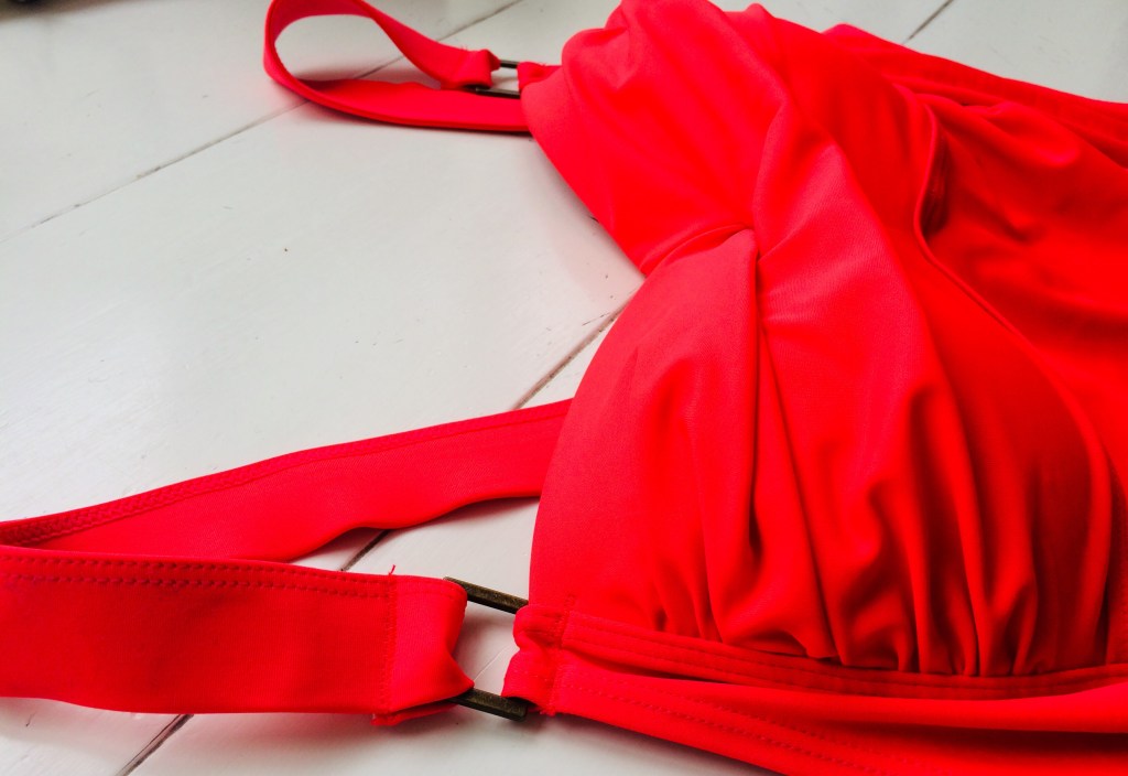 Meine Antwort ist ziemlich blöd, denn ich trage, statt wie sonst dezent schwarz-weiß gepunktet, zum ersten Mal meinen neuen Badeanzug, der ausschaut, als würde ich zum Baywatch-Team gehören. Aber in knallig.