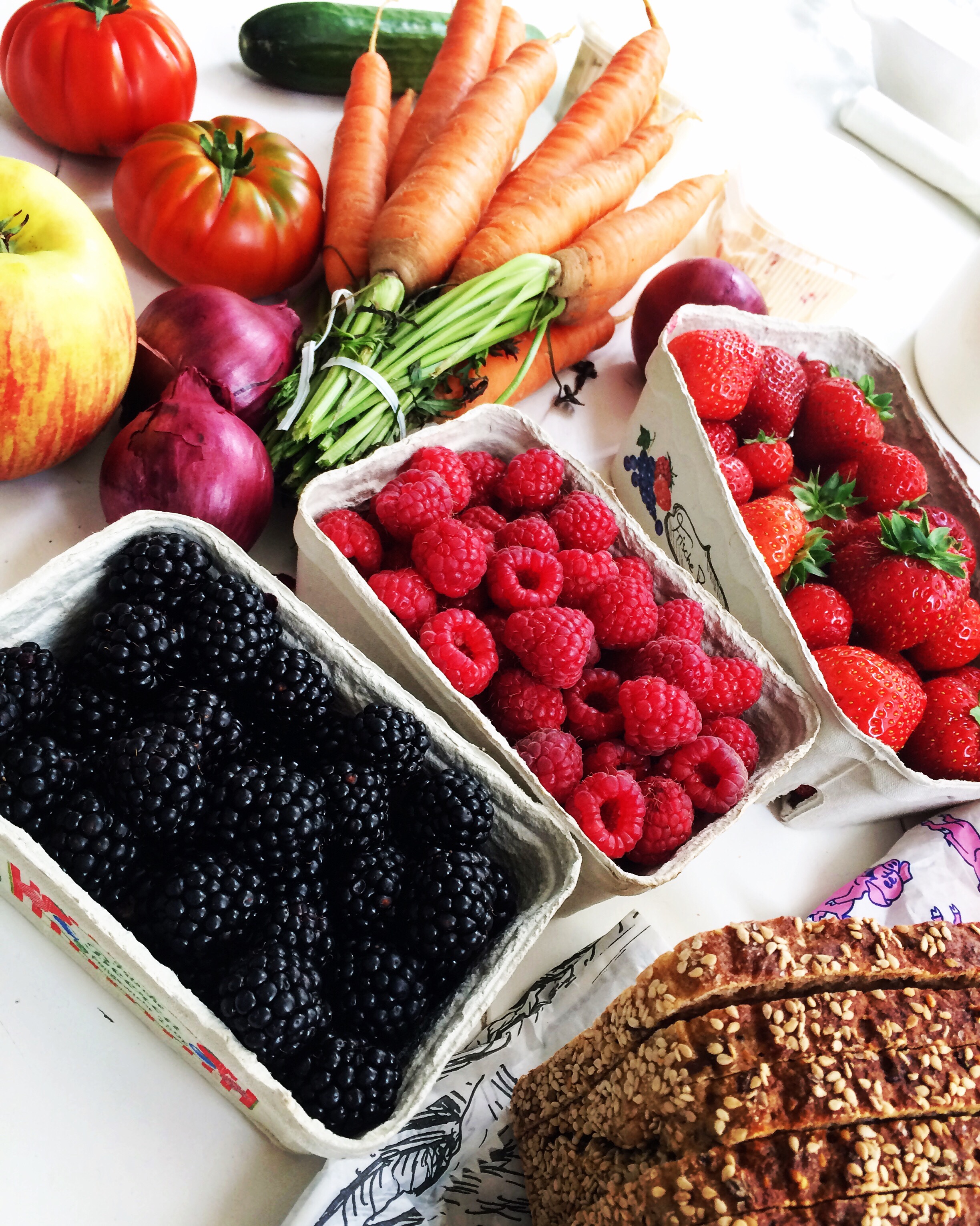 Ich schütte die isotonischen Getränke und den Apfelsaft weg und werfe die restlichen Weizenkekse in den Müll – vor des Nachbarn Tür stellen kann ich solche angefangenen Dinge nicht – nichts soll mehr an die Darmspiegelung erinnern, und ausserhalb dieser extremen Miss-Ernährungswoche kann ich diese Dinge nicht gebrauchen. Ich bin erstaunt, wie sehr mir meine gesunde Ernährung fehlt und mache einen Ausflug zum Isemarkt, um Brombeeren, Erdbeeren, Himbeeren, Äpfel, Wurzeln, Vollkornbrot und etwas Frischkäse an den Ständen zu erwerben.