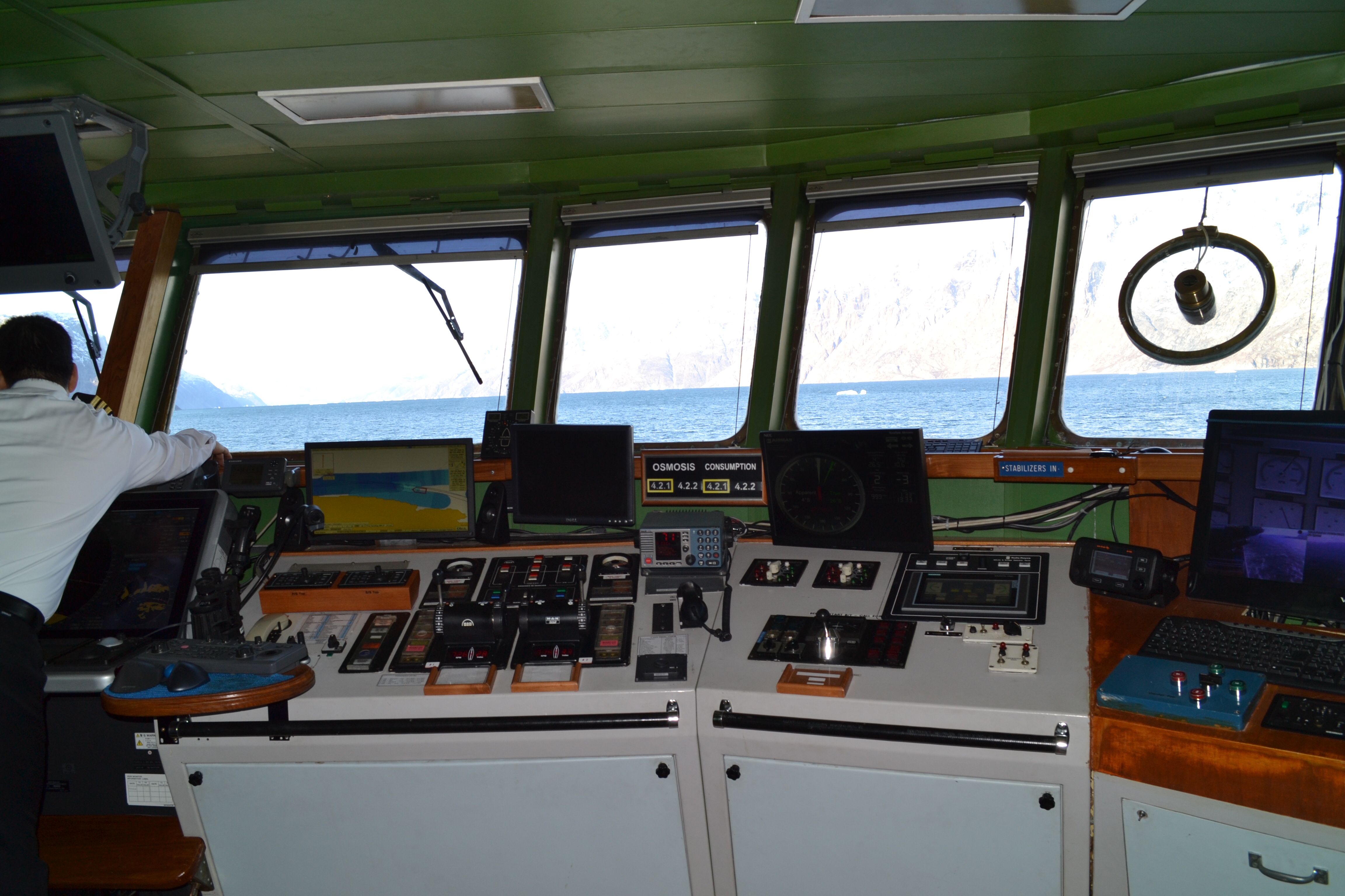 Spucktüten sind die Gänge hinunter an den Wänden drappiert, das Bordshopping, das Kayak-Intro und der Vogelkunde-Vortrag werden verschoben, es ist ja kaum ein Passagier auf den Beinen. Zum Glück werden die für 16.00h angekündigten Crepe Suzette in der Lounge nicht verschoben. D. lasse ich auf der Kabine schlafen und trete den wackeligen Weg in die Lounge an. Ich plaudere mit G. aus Berlin und A. aus der Schweiz.