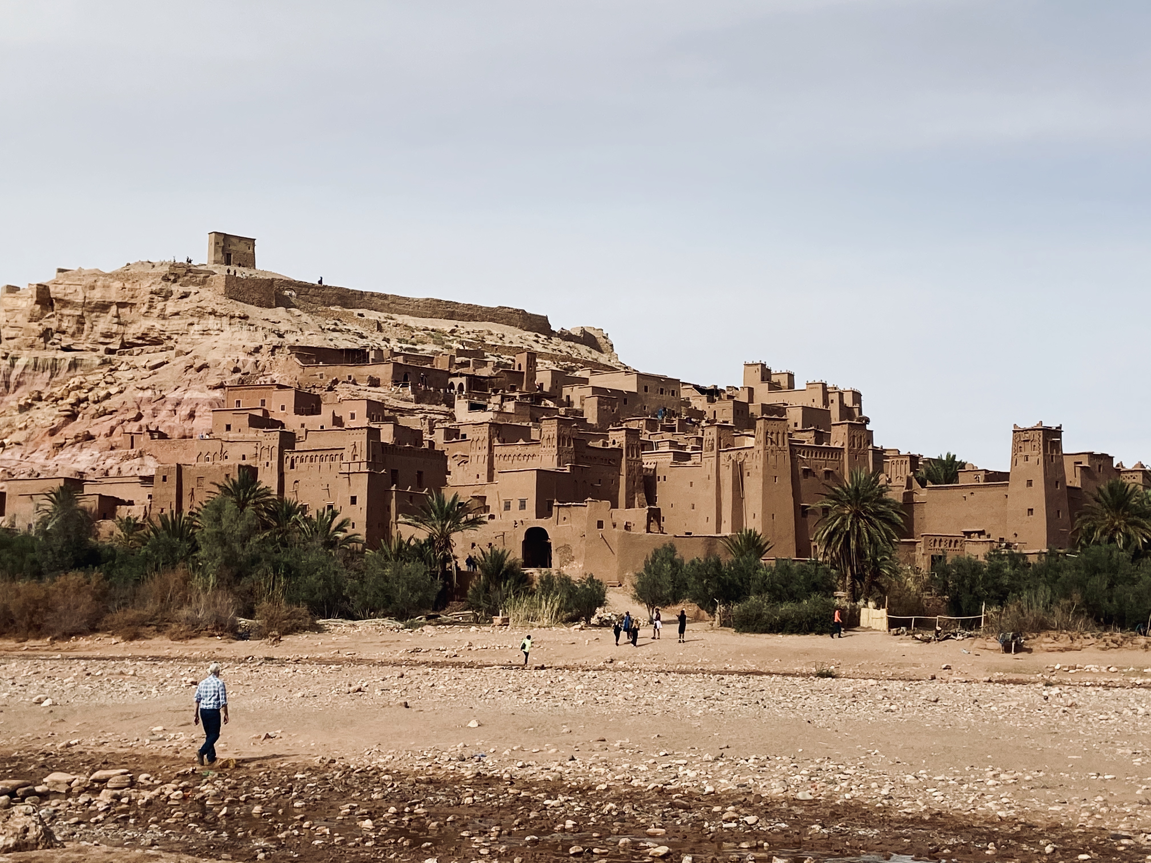 Wir halten in Ait Benhaddou, die vielleicht schönste der Berberburgen und Unesco-Welterbe. Hier wurden unzählige Hollywood-Filme gedreht, unter anderem der Gladiator, Prince of Persia, Games of Thrones und Laurence von Arabien. Eine Stunde wandern wir über den Fluss und die vielen Treppen des kleinen und fast unbewohnten Stadtteils hinauf, um uns herum die Wüste, Palmen und eine spektakuläre Sicht. I. hat sich schon wieder lautstark mit jemanden in der Wolle, ich ignoriere es.