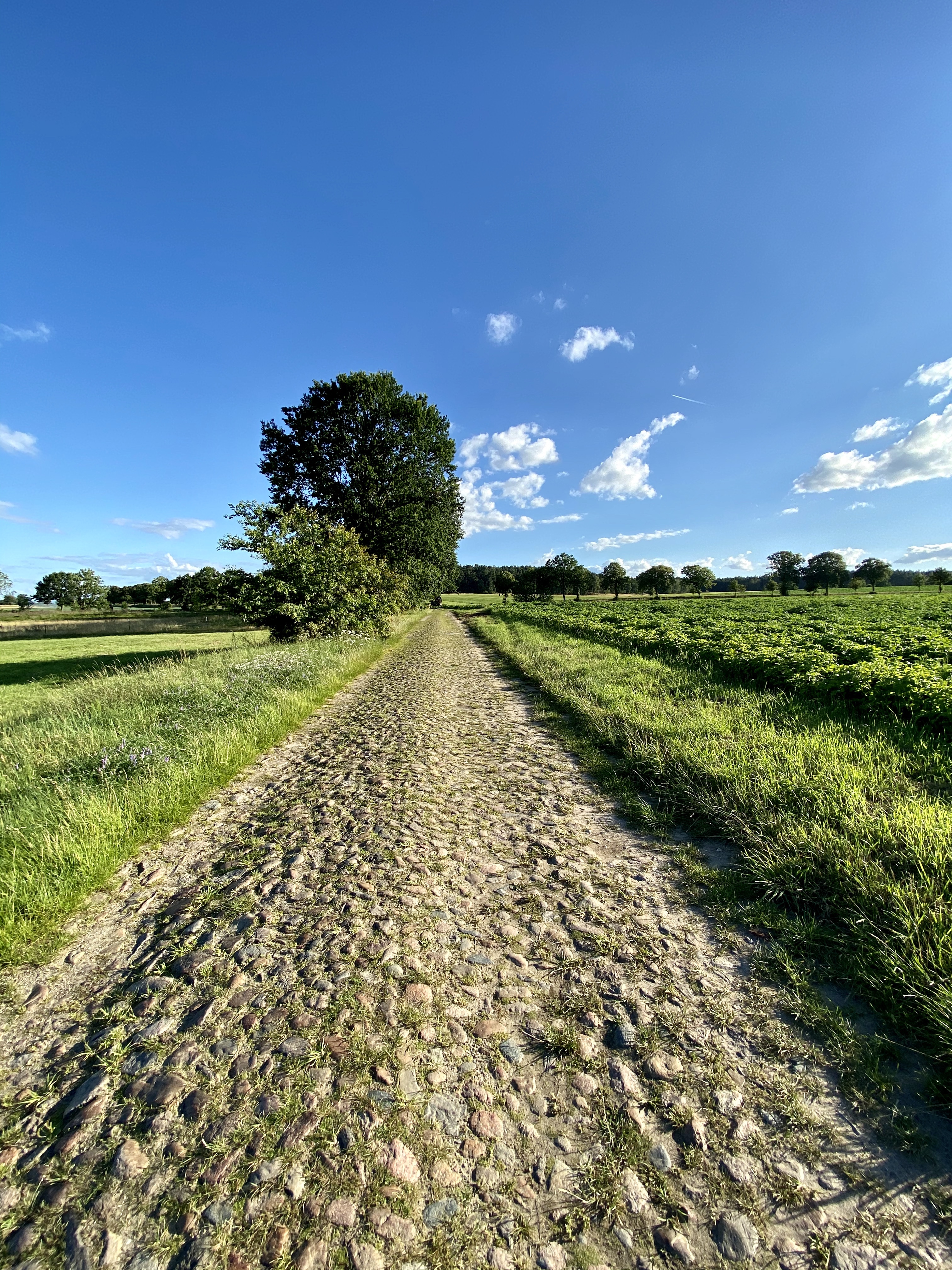 Seit der Strahlentherapie bin ich ein Schnee- und Schattenmensch geworden, in der Sonne halte ich nicht lange durch. Bevor ich aber den Rückzug zur Mühle antreten kann, brechen wir auf zu einer anderen Wiese, die unter Bäumen liegt. Irgendwie sind hier auch weniger Insekten unterwegs, und so langsam finde ich in die Form und zu meiner Balance zurück.