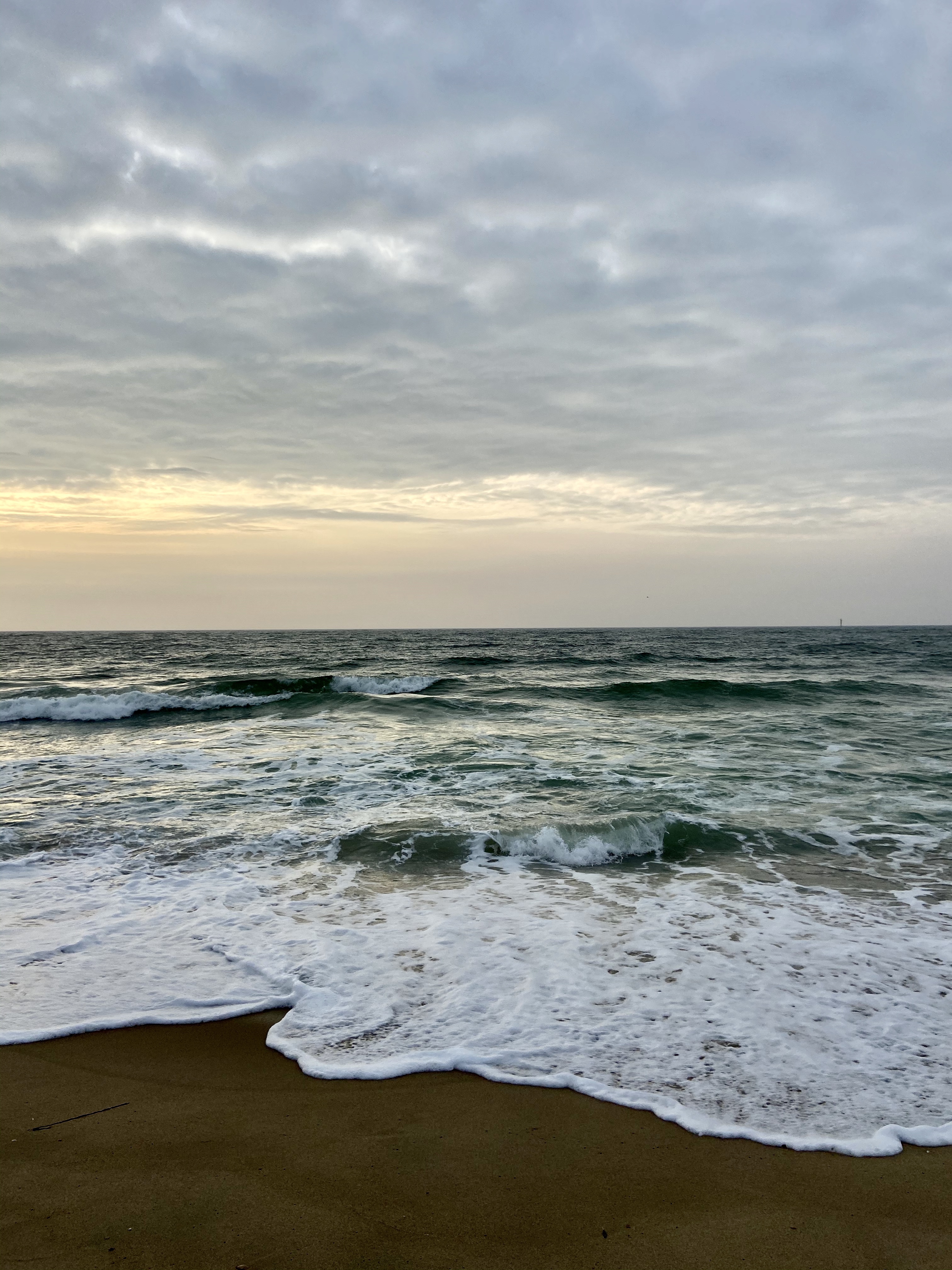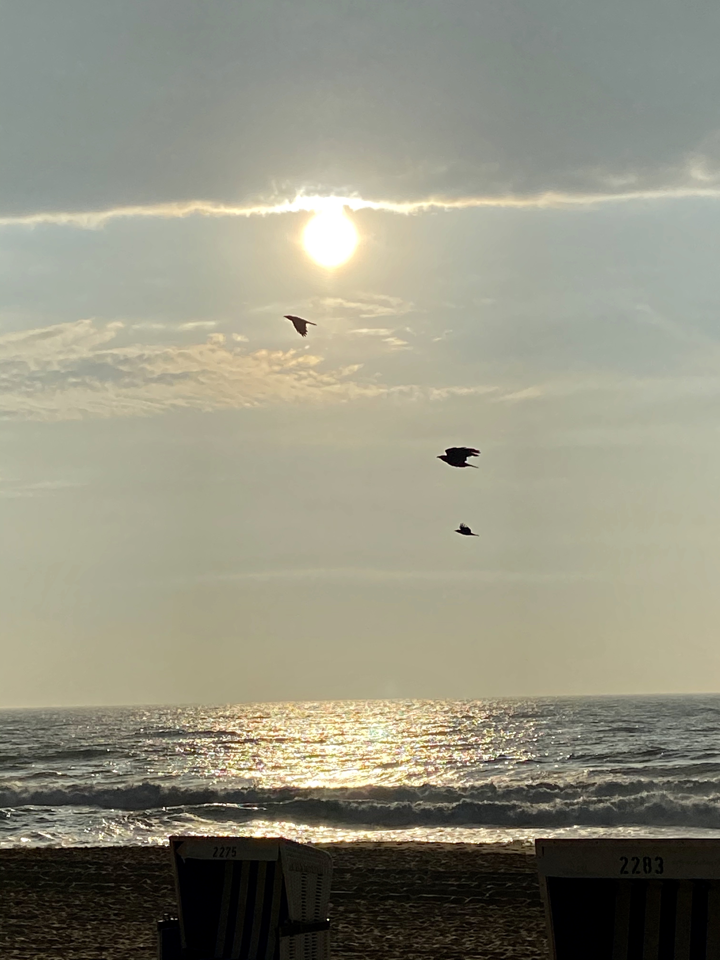 Ich stapfe durch den Sand, ganz hinten am Horizont ein gleissendes Glitzern, friedlich und weit weg, als ob das Meer dort ein anderes wäre.
