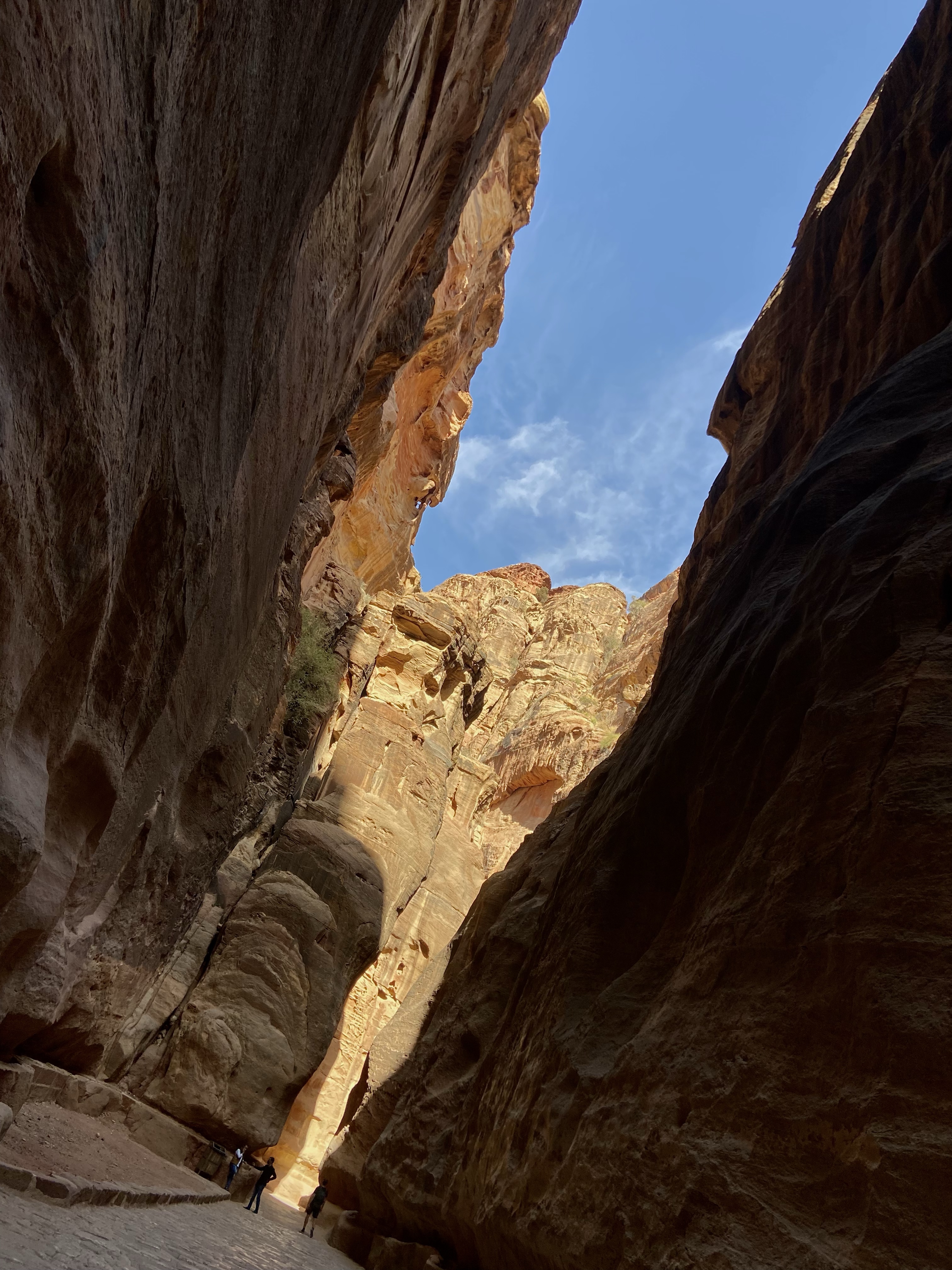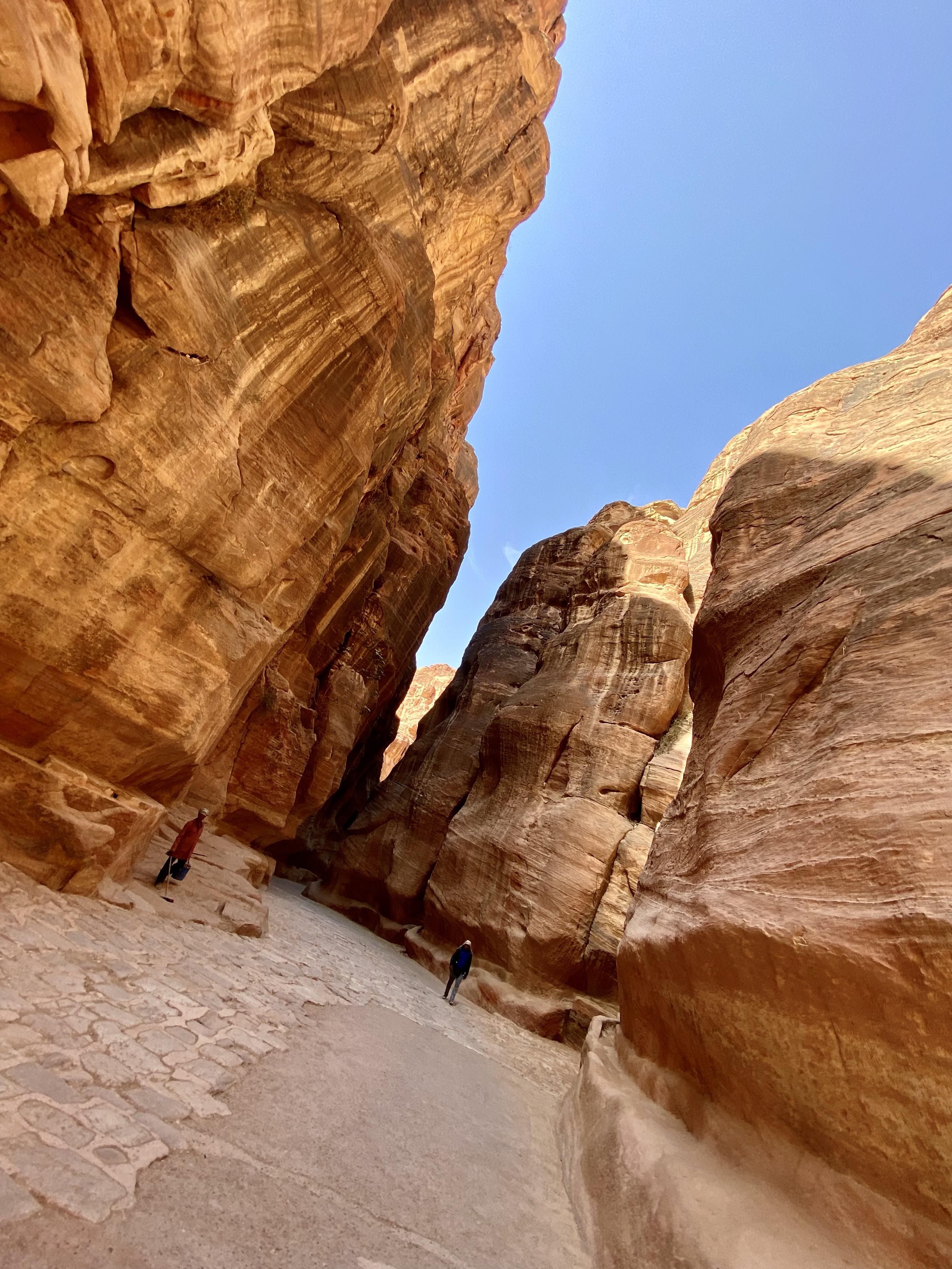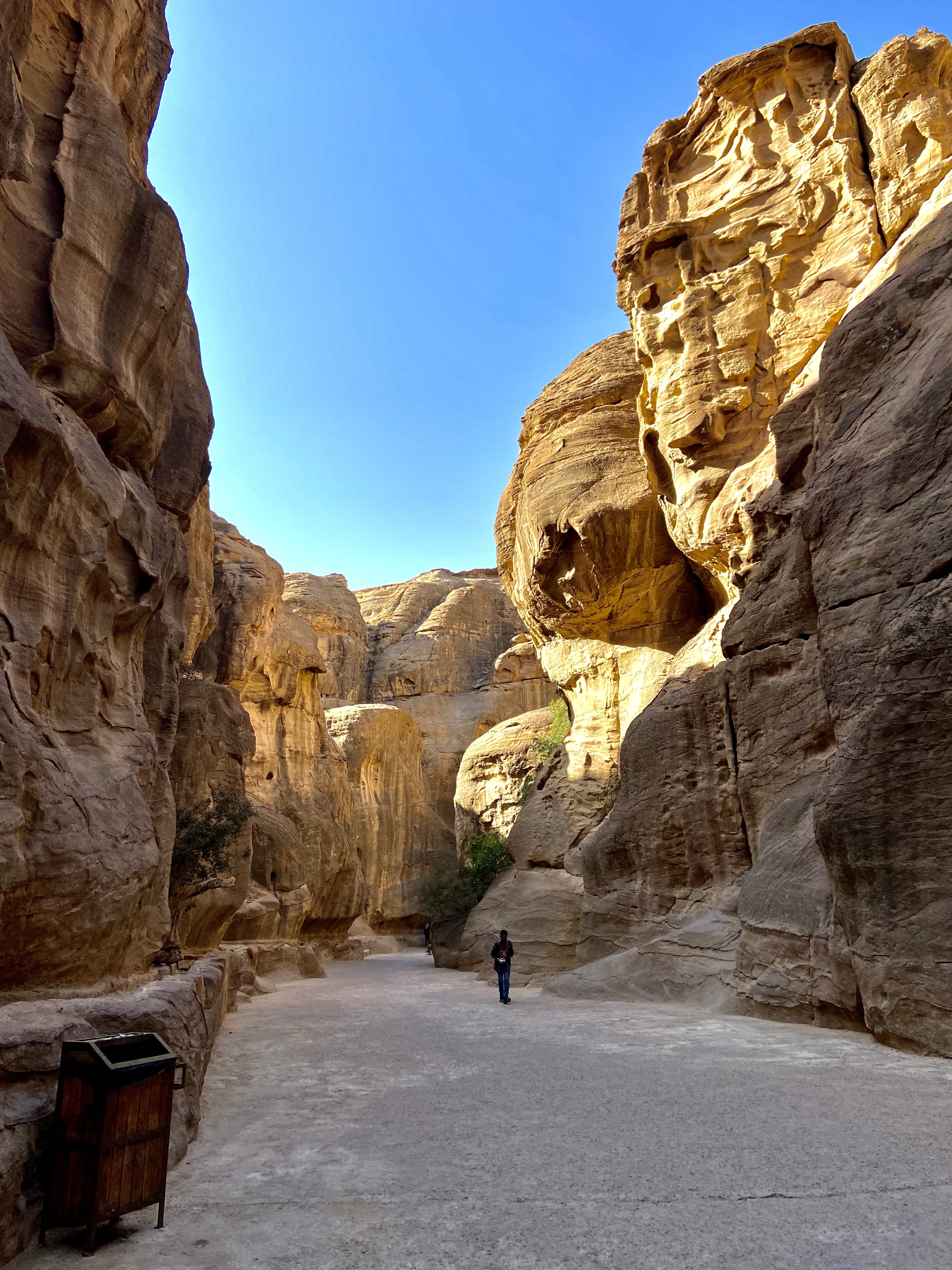 Irgendwann kehre ich um. Noch etwas bewundernd vorm Schatzhaus stehen, durch den schattigen Sik (Felsenschacht) bummeln, überlegen, wie ich die letzten Kilometer in flirrender Sonne bewerkstellige, und dann steht da schon Mohammed mit seinem Pferd, bis zum Hotel könne ich reiten, was ich dann doch dankend ablehne. Vorm Visitor Centre steige ich ab.