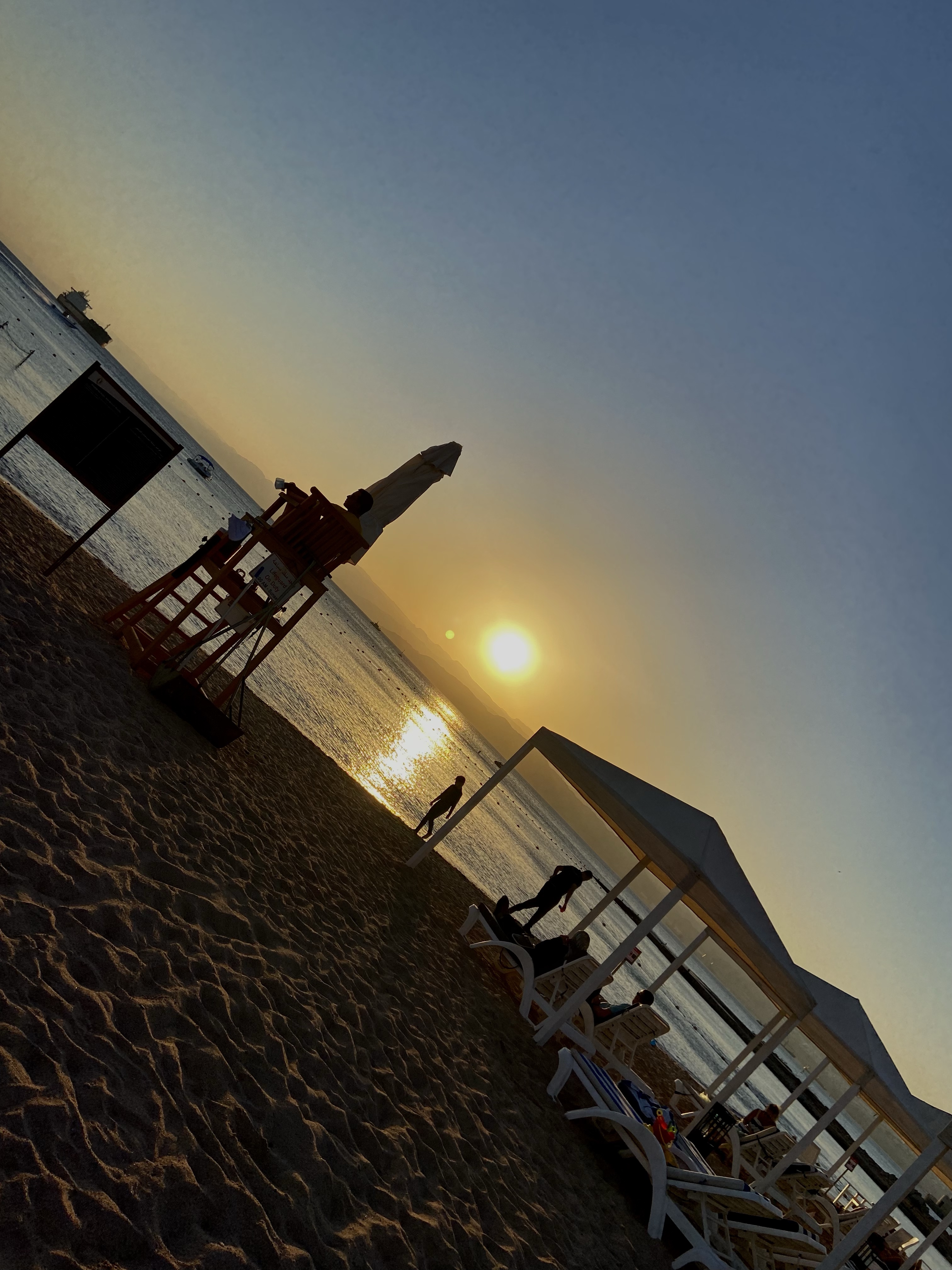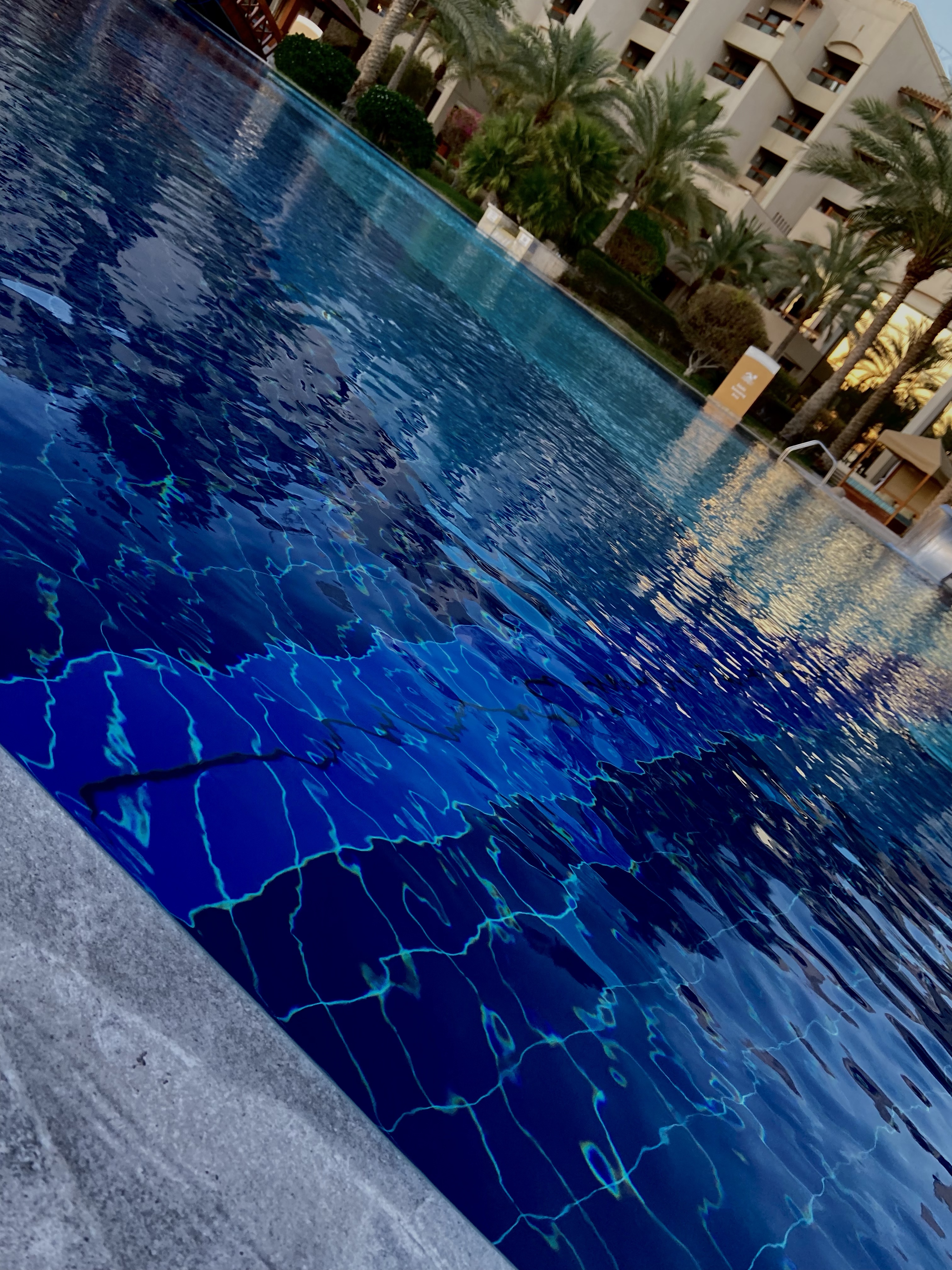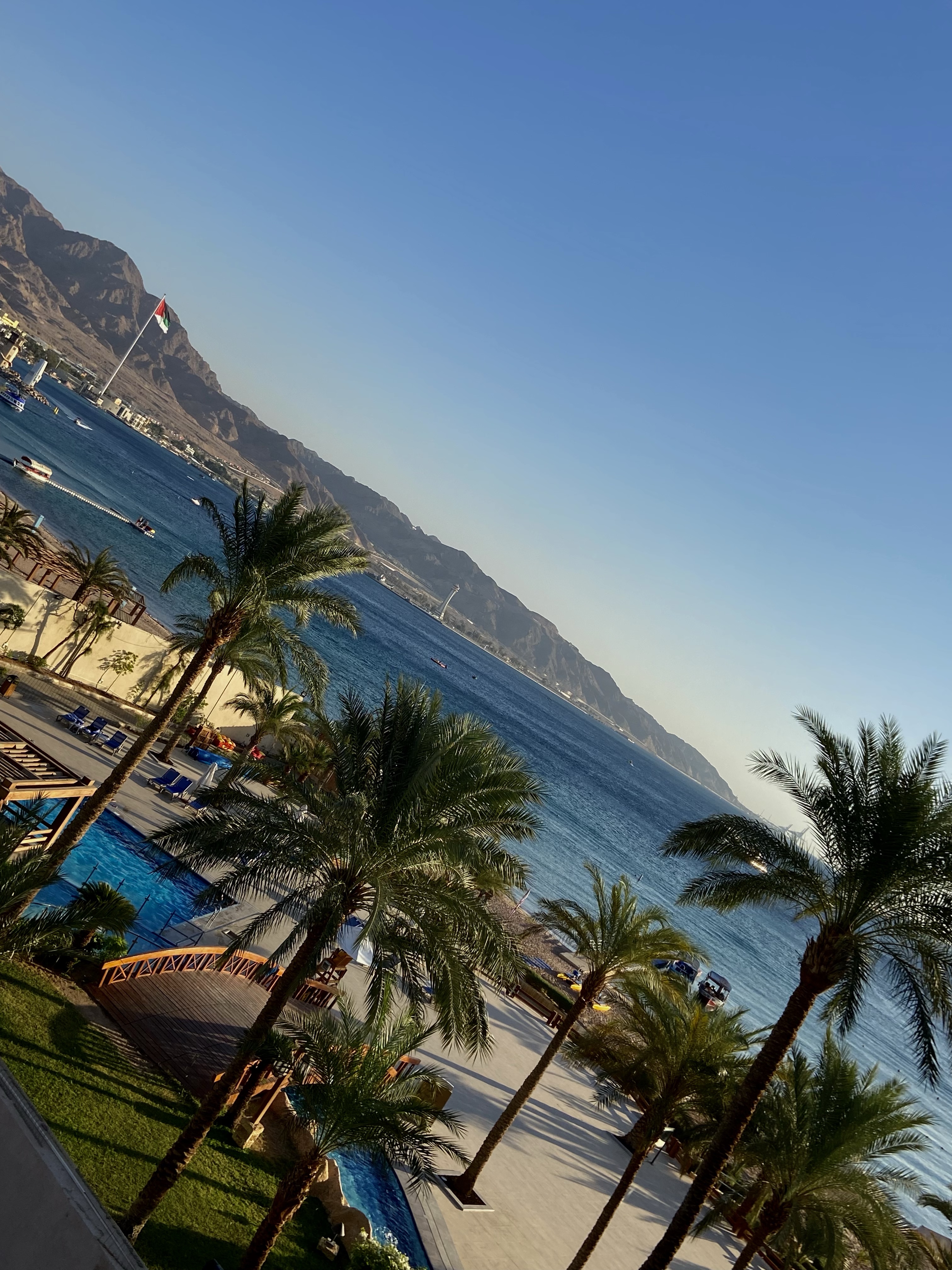 In Akaba gibt es Falafel mit Hummus, bevor wir in eines der schönsten Resorts einchecken: Marmor, riesige Halle, grosszügiges Zimmer samt Bad, Balkon mit Blick auf Pool (yeah!) und das Rote Meer (nochmal yeah!). Endlich kann ich mein Kleid zum Dinner anziehen, aber vorher geht es im Badeoutfit zum Strand. Ins Meer darf man allerdings nur mit Badeschuhen, die ich nicht dabei habe; hier gibt es Stachelfische, die am Meeresgrund sitzen. Also ab in den Pool, den ich für mich habe, ich schwimme mit Blick aufs Meer und blinzel in den Sonnenuntergang.