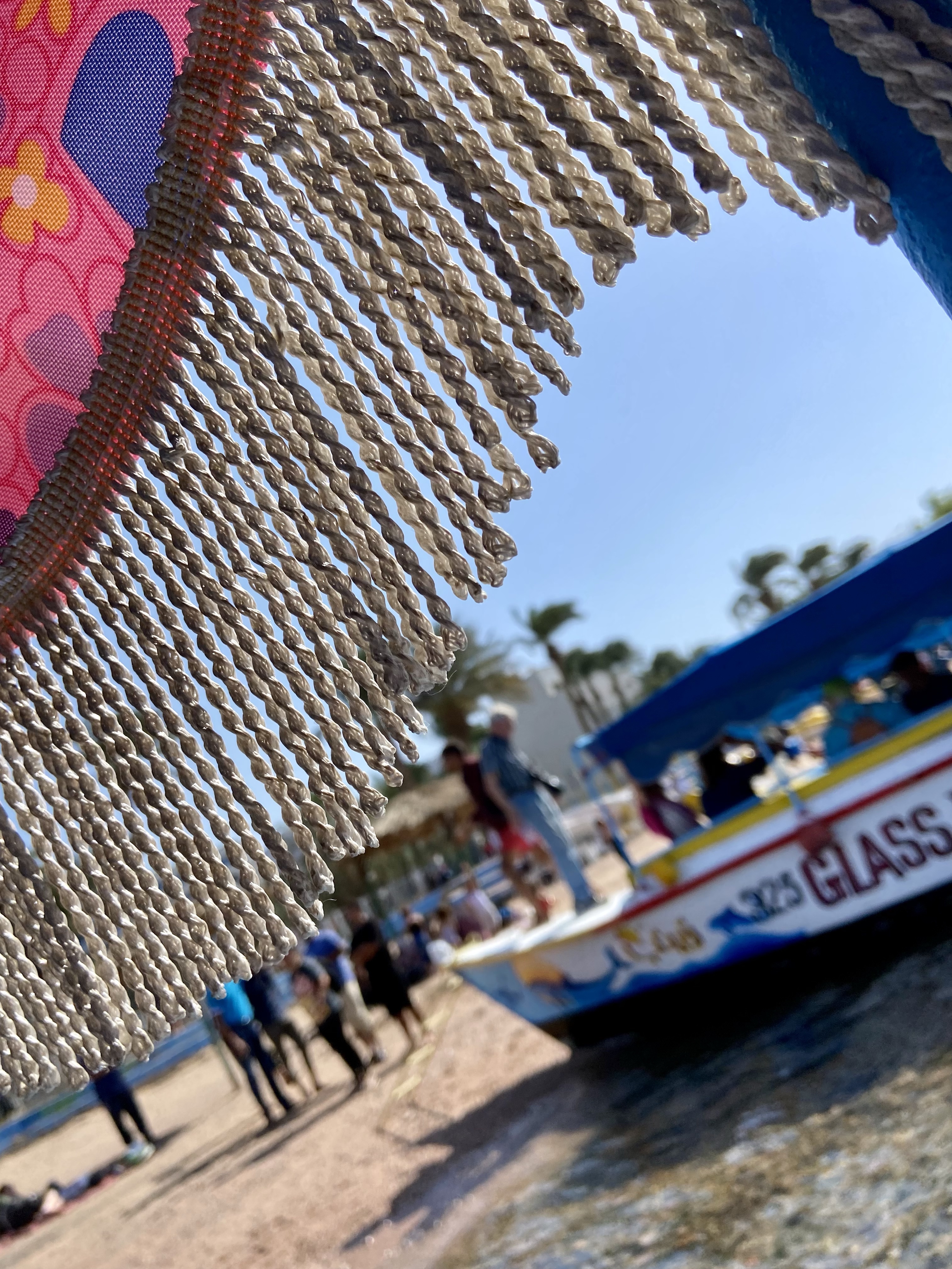 Der Wind treibt mir die Tränen in die Augen, ebenso die Dankbarkeit, jetzt hier sein zu dürfen, aber auch das Mitgefühl für Mary, Marie und all die anderen, die gerade im Krankenhaus liegen und für weitere Zeit und schöne Momente kämpfen. Mich berührt das sehr, erlebe ich doch gerade schöne Momente. Im Wind auf dem Roten Meer, hier auf dem kleinen Glasbodenboot, verspüre ich sogar etwas von der verloren gegangenen Leichtigkeit, wir lachen, hören laut Musik und winken zu den anderen Booten rüber.