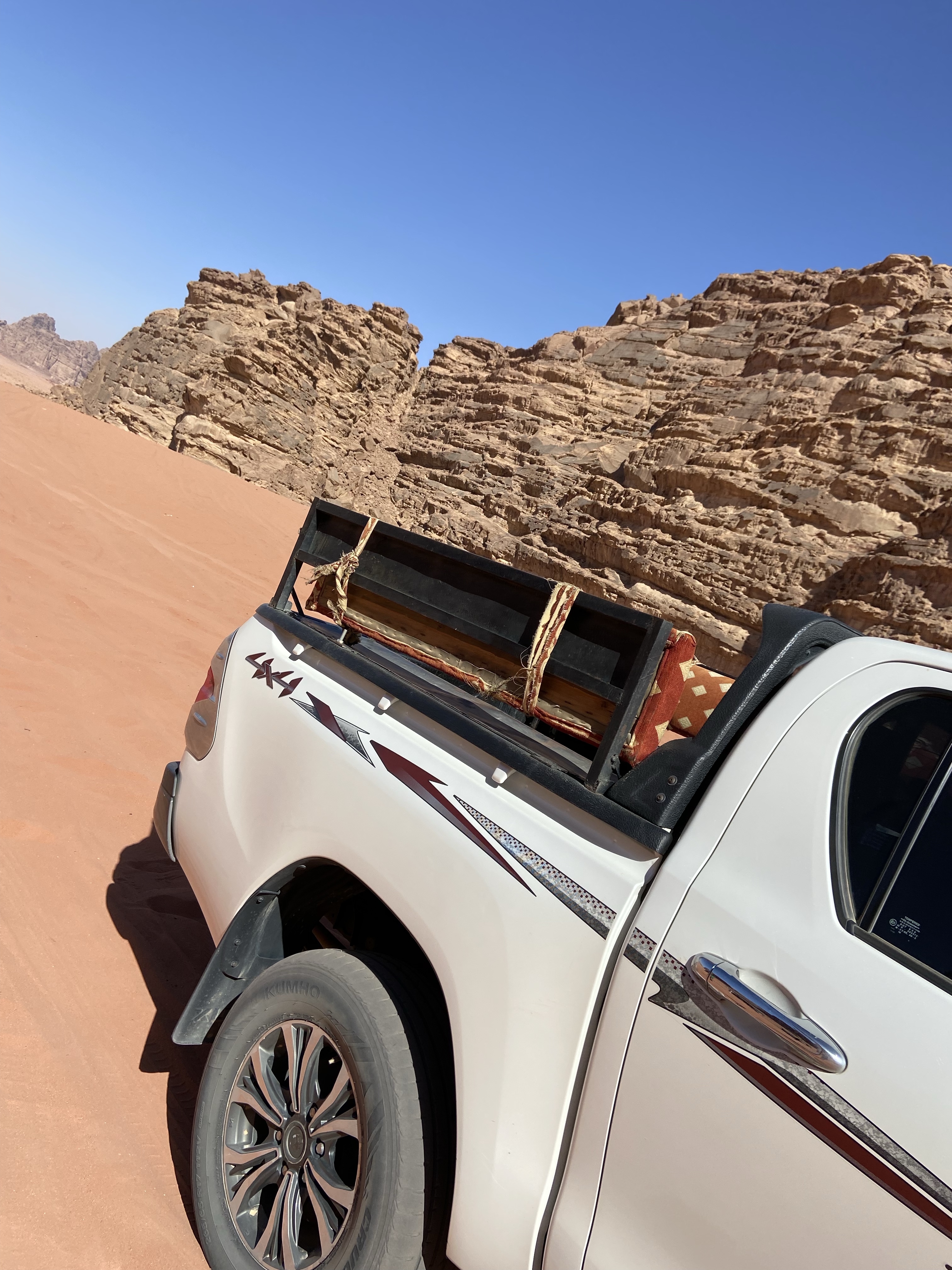 Der Himmel so blau über der Wüste, während wir lachend und staunend auf dem Jeep sitzen und durch den Sand rumpeln.