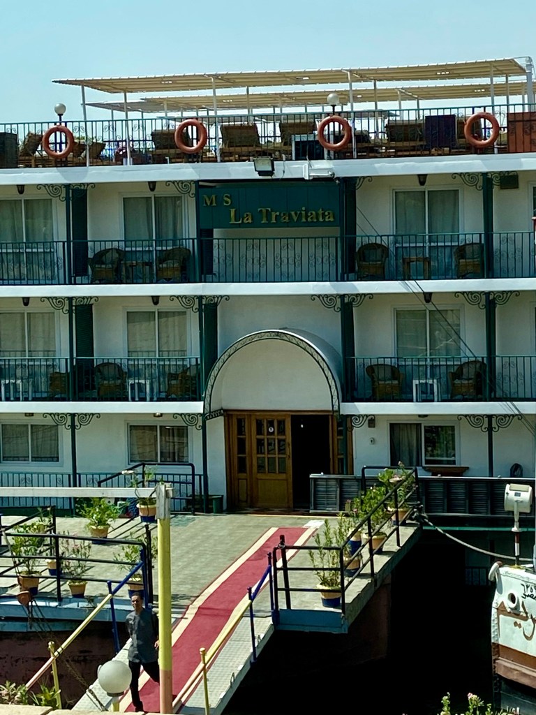 Check in auf dem Flussschiff, mit dem wir den Nil hinabgleiten werden. Ich bin begeistert: es sieht tatsächlich very british aus, wie in meinem Lieblingsfilm „Tod auf dem Nil“. „Nun brauchen wir nur noch einen Toten“, konstatiert P., der Gymnasialdirektor, der beim Lunch im Bordrestaurant neben mir sitzt. Wir haben ja noch ein paar Tage vor uns…