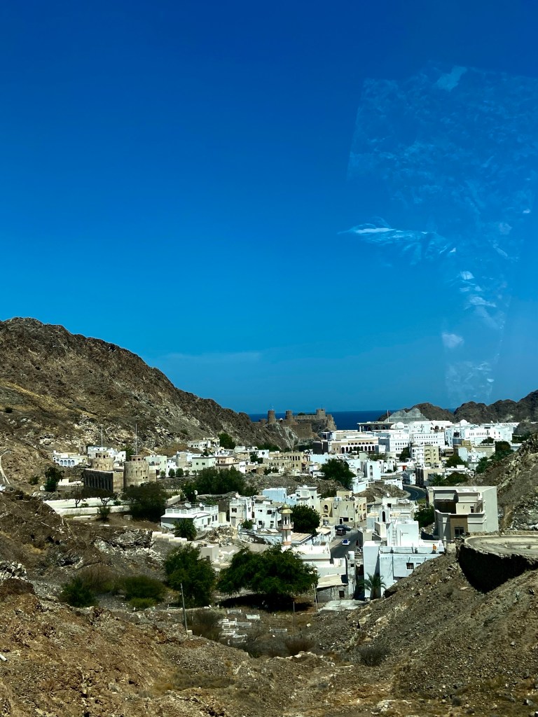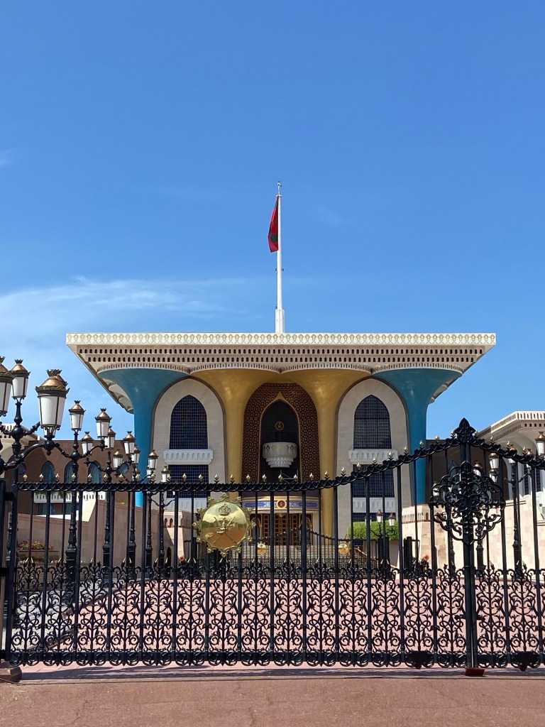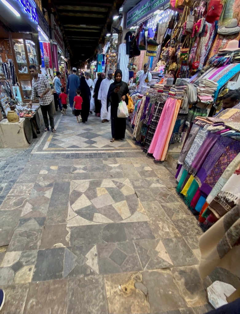Das komme aus dem Norden des Omans und beschützte vorm Bösen, sagt der Inhaber des Ali Baba Gift Shops im Souk. Ali Babas Gift Shop sieht tatsächlich wie eine Räuberhöhle aus, Schmuck Silber und Krummdolche hängen von der Decke und an den Wänden, wir sitzen auf Hockern vor drei riesigen Schalen mit altem Silberschmuck, der nach Gewicht verkauft wird. Ich nehme den Kettenanhänger mit, denn Schutz vorm Bösen kann man immer gebrauchen.