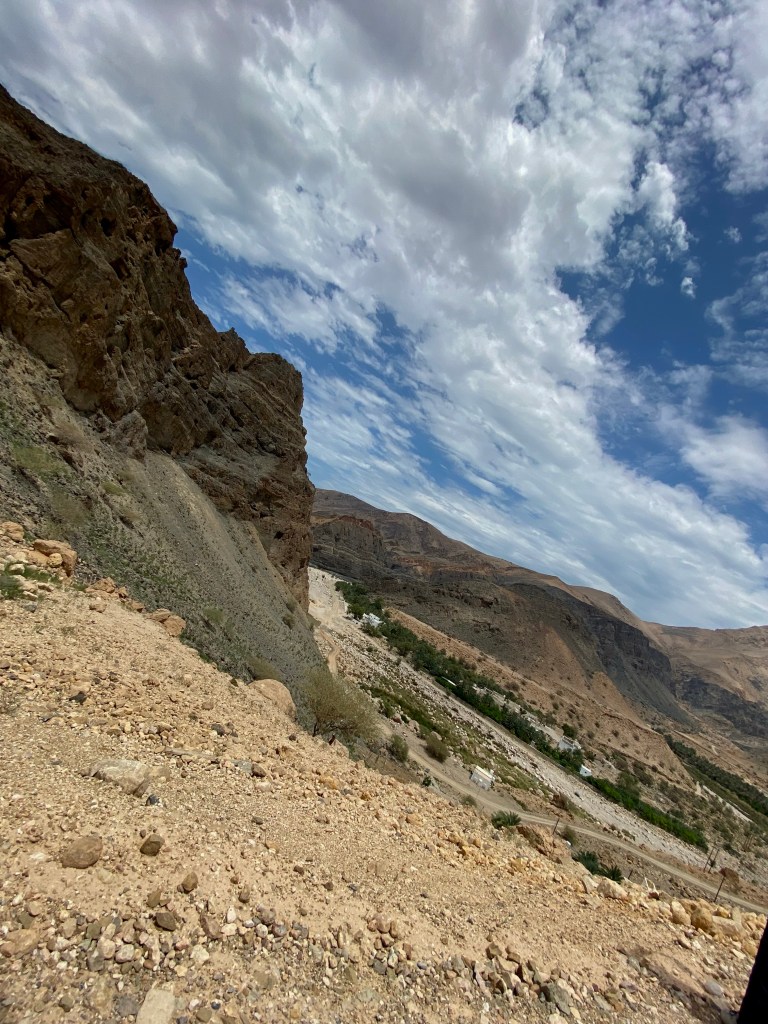 Wir halten an einem Stausee, fahren durch Matsch und überschwemmte steinige Pfade, Palmen links, Esel und Ziegen rechts, und wir mittendrin. Das Mittagessen (Snacks wie gehabt: Nüsse, Obst, kandierter Ingwer, Sesamstangen, Kekse) essen wir unter dem Schatten einer Palme, unsere vier Fahrer sitzen abseits auf ihren Gebetsteppichen. Ab heute Abend dürfen auch sie wieder essen, denn Ramadan neigt sich dem Ende zu.