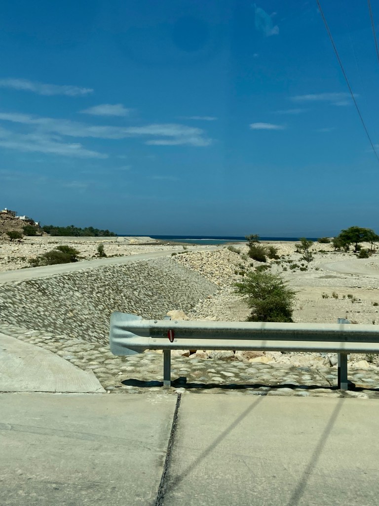 36 Grad, ich schwänze die Wanderung durch das Wadi und bleibe im Jeep, weiter geht es dann nach Sur in unser nächstes Hotel. Das Hotel ist gut besucht, lauter indische Kinder toben durch die Flure. Es giesst in Strömen.