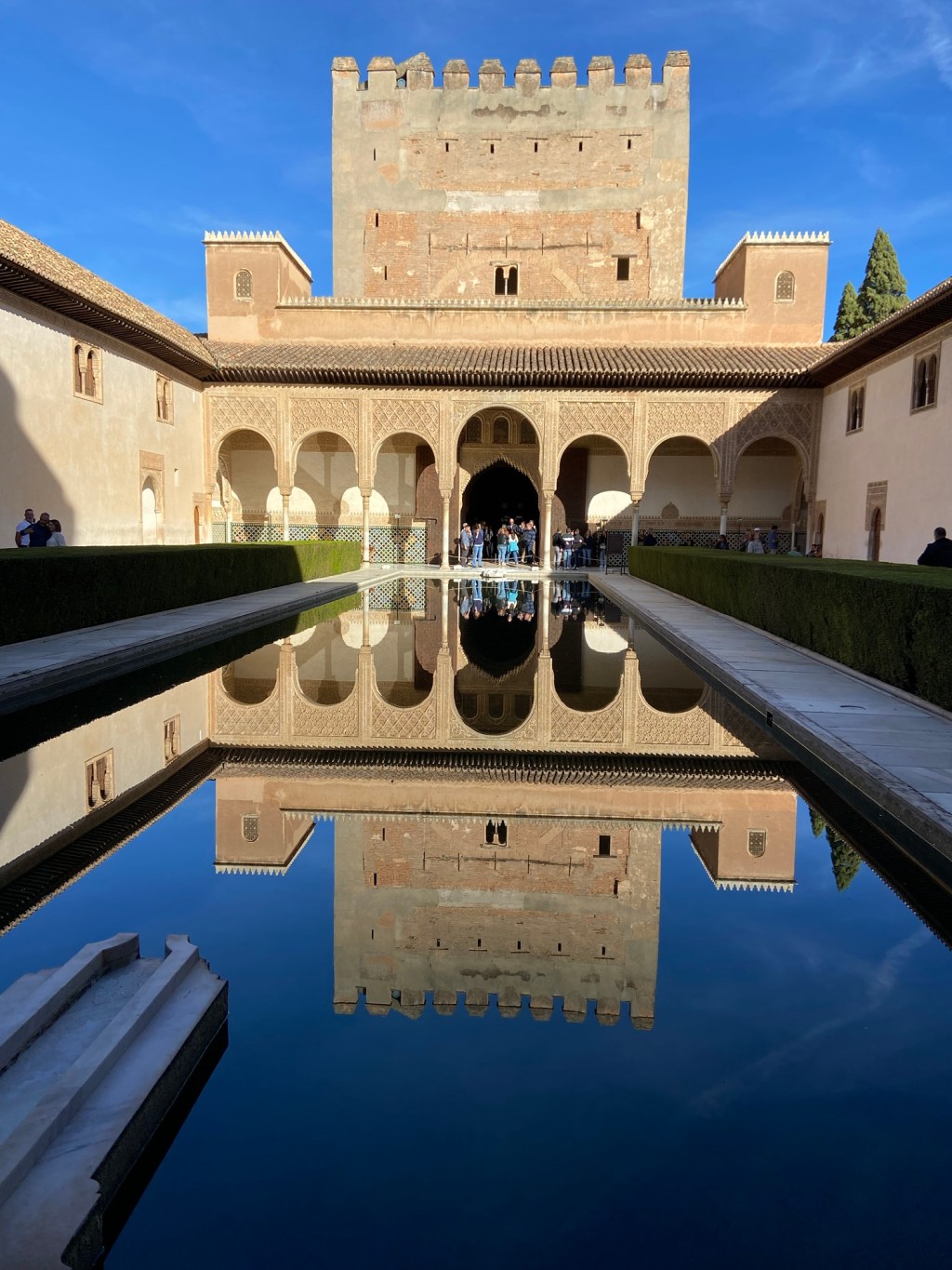 Morgens bei klarer Luft unter Granadas blauem Himmel durch den Park zur Alhambra zu spazieren.