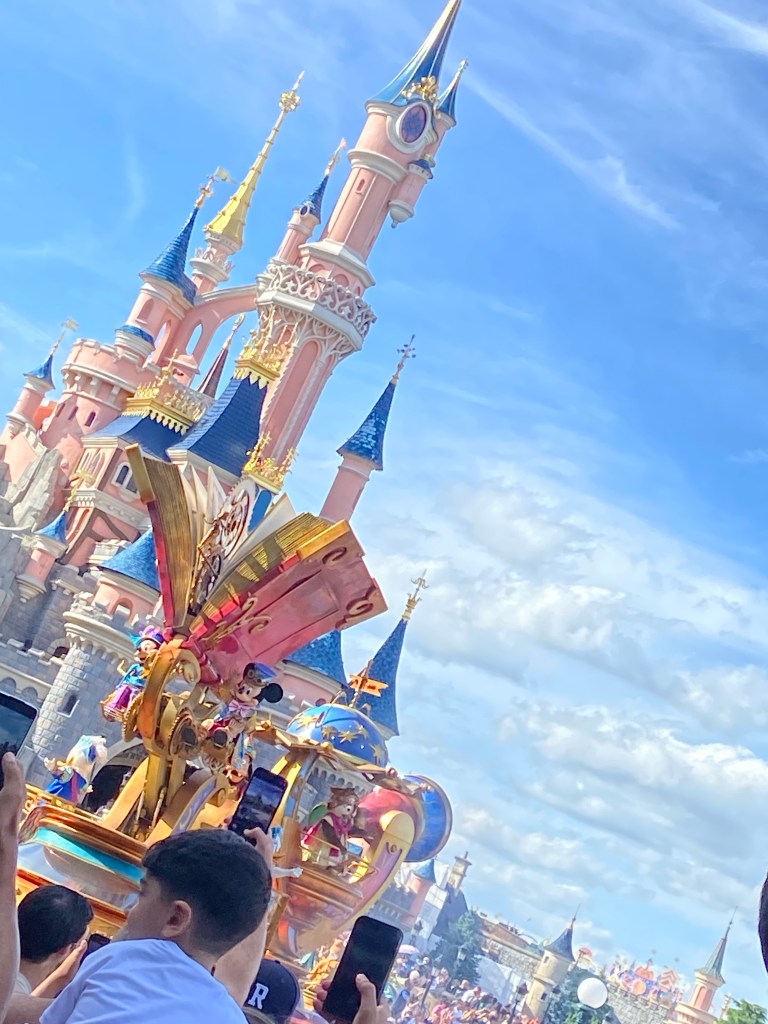 Start um 5.20h im Dunkeln an der Bushaltestelle in Pasing (der Bus kommt nicht, wir wandern vollgepackt zum Marienplatz um ein Taxi zu nehmen. 5,5 Stunden ab Hauptbahnhof nach Paris Est im TGV (dem Kind ist schlecht, es übergibt sich, spricht und isst nix, und ich bin ratlos), weiter mit der Metro 4 nach Les Halles (dem Kind geht‘s besser), dann mit dem RER A bis nach Nation, Schienenersatzverkehr mit Linie 1 bis St Vincennes, dann den Bus bis Val Fontenay, dort in den RER A bis Marne La Vallée, und dann sollte es mit dem Shuttlebus ab Bussteig Q ins Hotel gehen.
