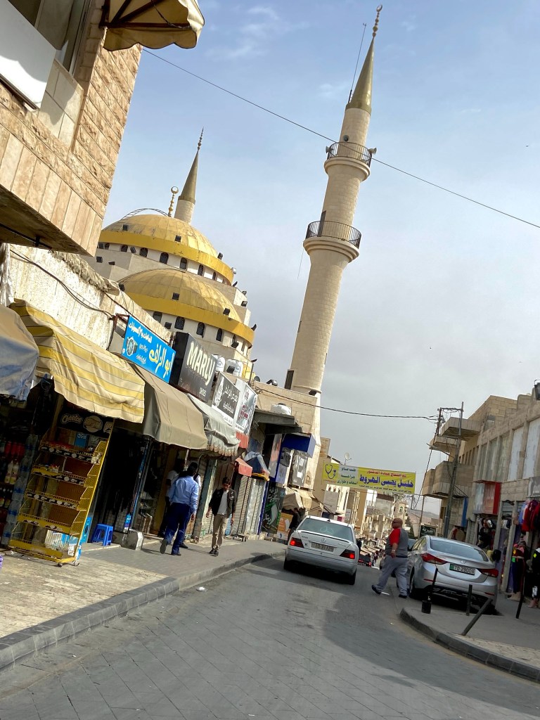 Und dann geht es erstmals raus aus der Geschichte und hinein ins aktuelle Gewühl der Stadt. Der Strassenverkehr ist zusammengebrochen, überall wird gehupt und gerufen, wir schlängeln uns durch die Marktschreier, die nur noch von den Rufen des Muezzins übertönt werden. Wir teilen uns, ich gehe mit unserem jordanischen Guide durch weiteres Marktgewusel und zum Falafelessen (ein Mitreisender ordert Almdudler, man kann‘s ja mal versuchen), und ja, die Zeit läuft uns davon. Mich stört das nicht, gehöre ich zu der Handvoll Reisenden, die nicht die anschliessende Tour zu den Wüstenschlössern gebucht hat sondern eigenständig die Atmosphäre Ammans aufnehmen möchte. Reinhild und Helmut schliessen sich mir an, was ganz nett ist, da ich dann nicht allein in der 4 Millionen-Einwohnerstadt verlorengehe. Wir bummeln nochmal durch die Stände und den Goldmarkt und fahren zur Rainbow Street. Hier ist die Stimmung gleich ganz anders, die Strasse könnte auch in London liegen mit seinen chilligen Cafés und kleinen Lädchen. Cappuccino trinken wir, dazu singt Adriano Celentano aus den Boxen, ein relaxter und angenehmer Nachmittag im eigenen Tempo neigt sich dem Ende zu.